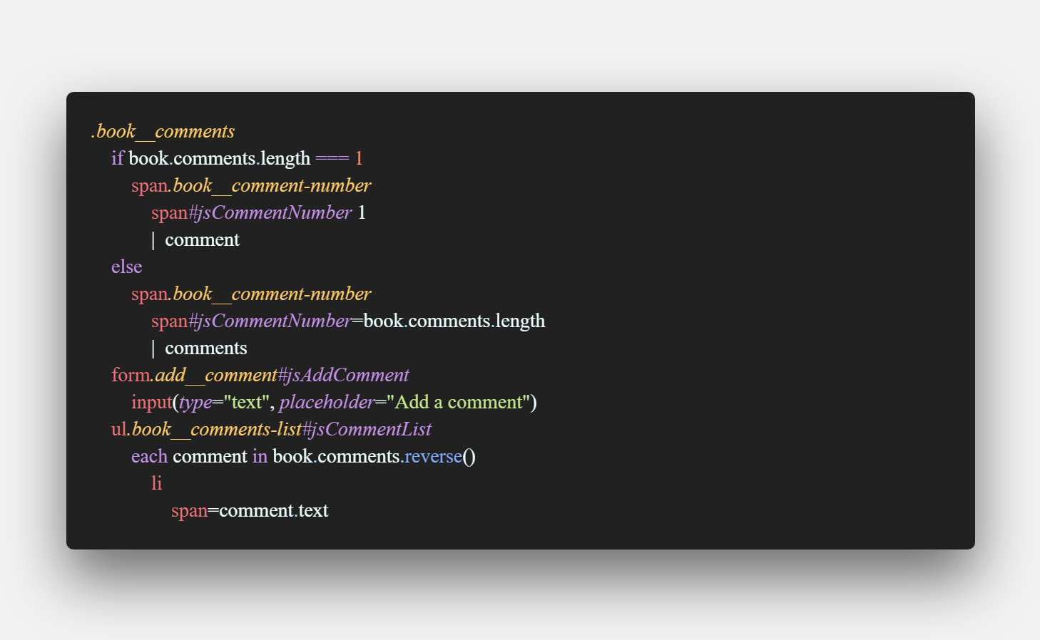 - 우선 bookDetail.pug에서 #을 이용해 add__Comment, book__comment-list 등에 Id를 부여한다.
