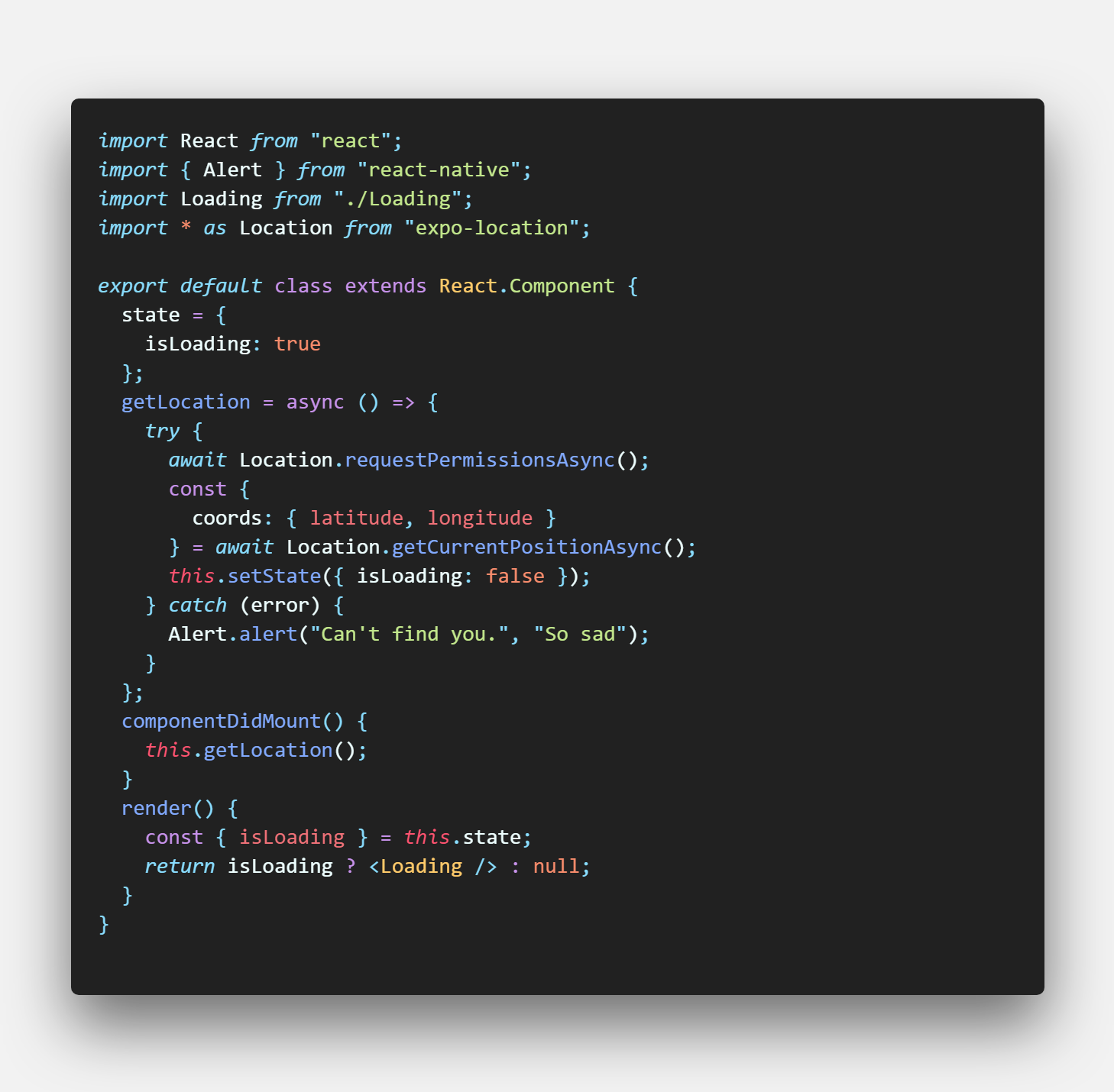 - 사용자 위치를 얻기 위해서는 getCurrentPositionAsync 함수 사용