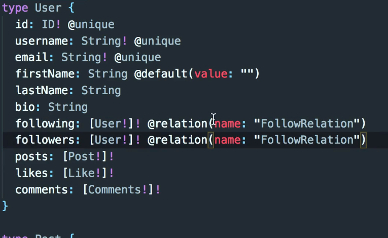 datamodel.prisma 파일에 필요한 모델들을 추가한다.